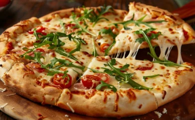 Every slice is crafted by hand using fresh dough, rich tomato sauce, and premium cheeses — baked to golden perfection.